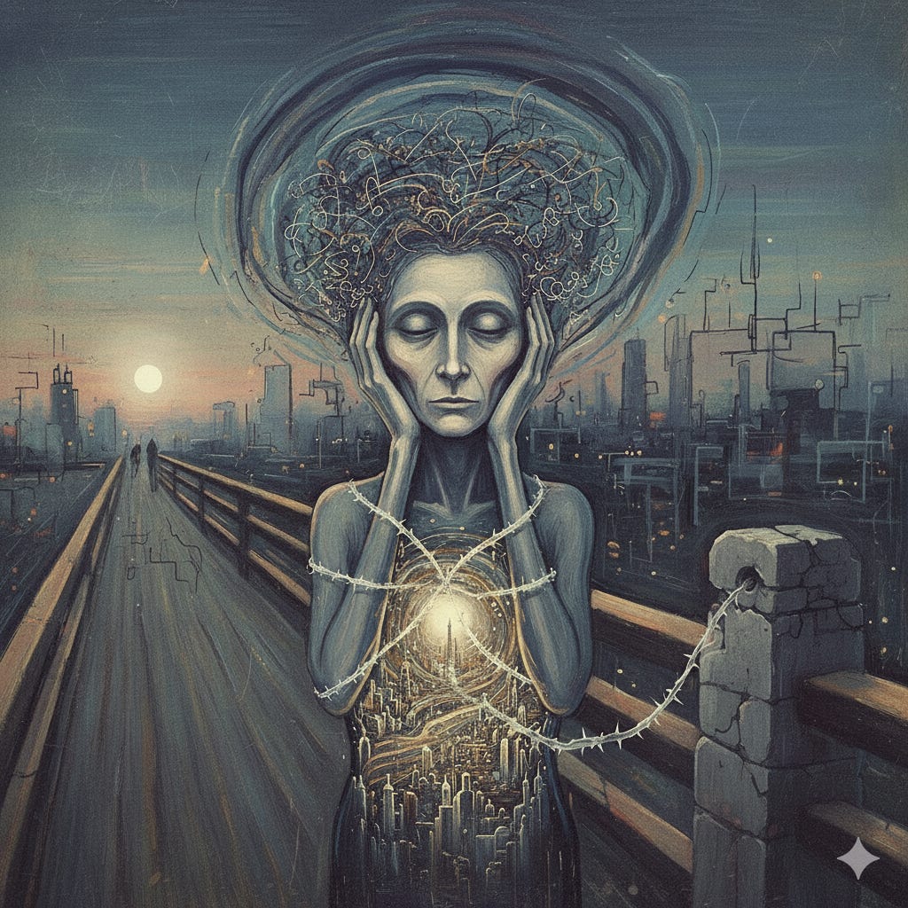 A resposta a essa necessidade, no entanto, é o "silêncio" da alma. Isso descreve com perfeição a experiência do desligamento autista (shutdown): um estado em que, diante de um estímulo excessivo, o cérebro "desliga" as funções de comunicação externa como forma de autoproteção. A sensação de que "as palavras se atrofiam no pensamento" deixa de ser uma metáfora poética para se tornar uma descrição quase literal da perda de acesso à linguagem funcional sob estresse extremo.
