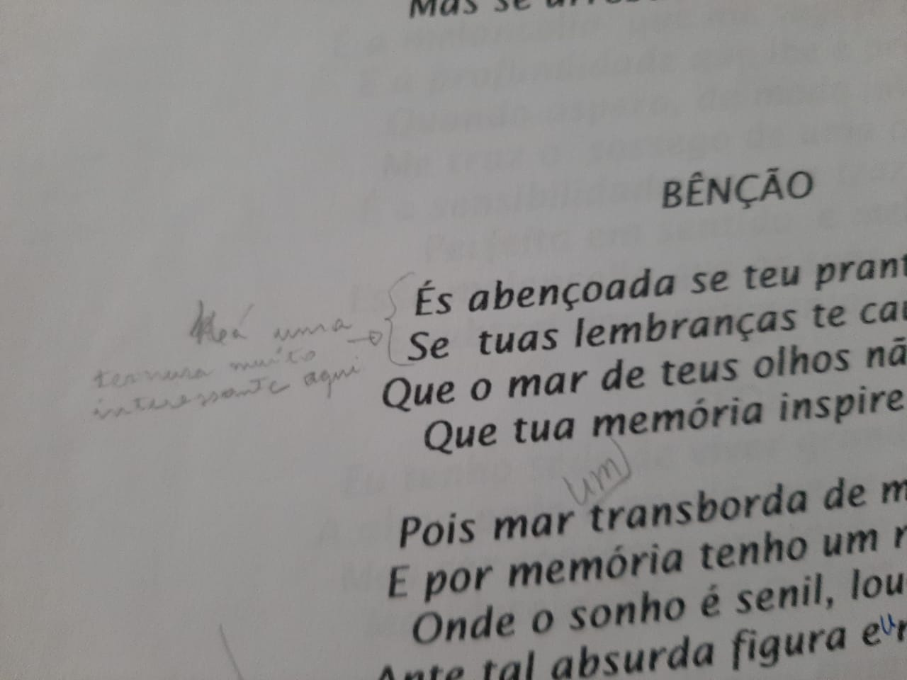 Sim, hoje, com um laudo neuropsicológico, eu posso ler “Bênção” com essa ambiguidade de um escrito sublimador de dores localizadas em outro tempo e como um salmo profético.
