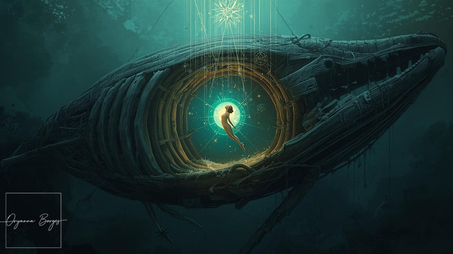 A criação poética que articula Jung, Bachelard e a invenção da arte que permite sobreviver ao ventre da baleia e à deriva nas águas do inconsciente.