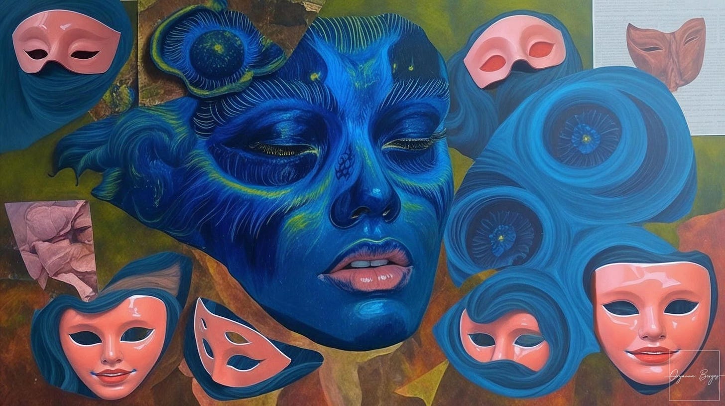 Para conter essa explosão interna, uma estrutura poética clássica. Essa escolha intuitiva daquela jovem autora pode ser formalmente interpretada como a tentativa de forçar o caos a caber em uma caixa organizada, de manter o controle, a aparência de normalidade, enquanto o mundo interior se desfaz. Contudo, a crise é tão forte que ela vaza, quebrando a própria estrutura.( E eis a metáfora do quadro de onde a figura vaza, explorado visualmente em Escapatória). Vários versos do poema escapam da métrica de 7 sílabas. A forma não aguenta a pressão. A máscara poética racha, assim como a máscara social.