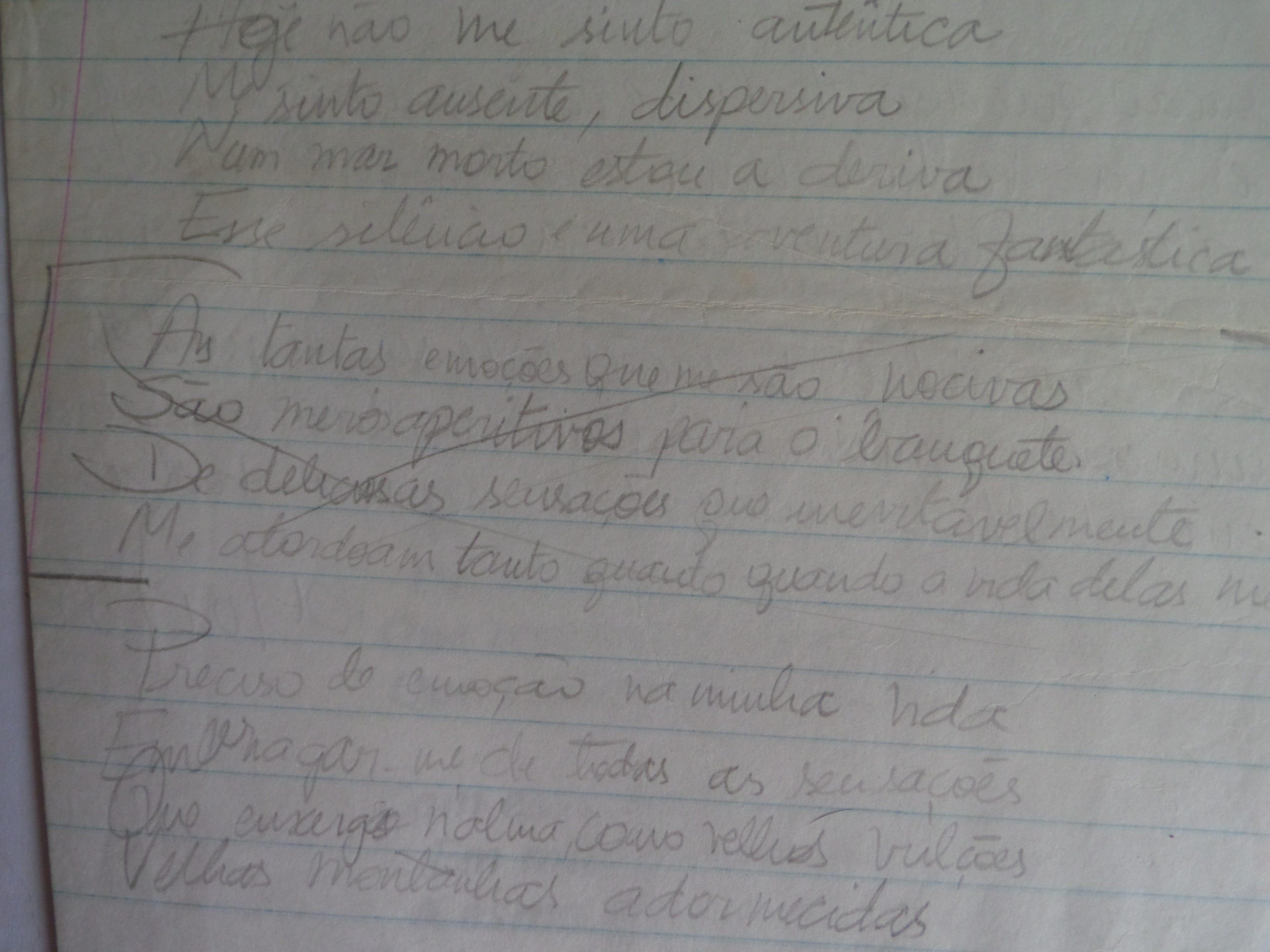 A falta de profundidade, detectada no primeiro verso de Vulcões Adormecidos, evidencia uma desconexão crescente e uma necessária confiança na minha própria capacidade de existir. Nessa época, eu era explorada em um relacionamento pouco saudável que me condenaria a uma vida sem estudo e sem criatividade, embora relativamente segura. Dos quatro anos investidos nesse relacionamento, claramente três foram voltados para a dissolução dos laços que eu mesma havia criado.
