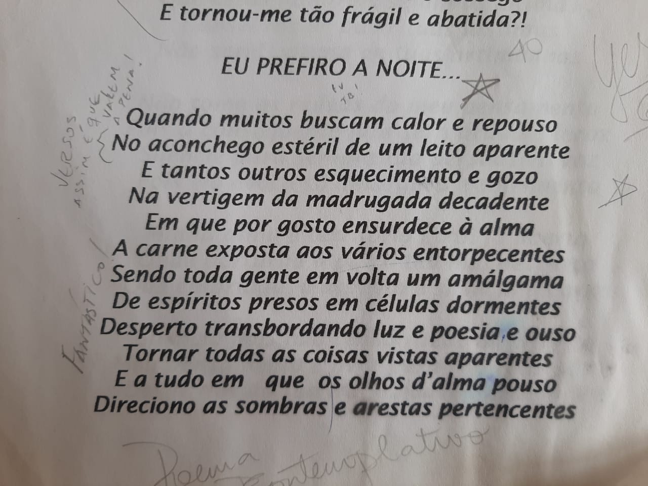 Foto dos originais de Retrato das sombras impresso, com as notas de meu amigo Max