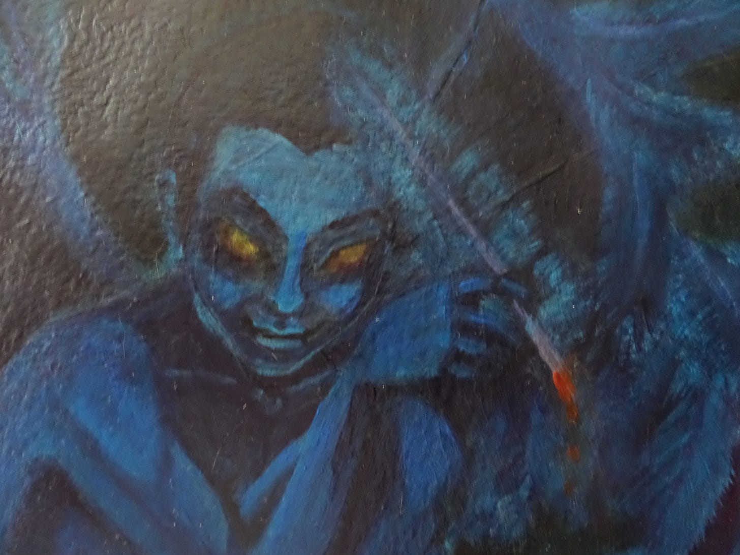 Hoje tive um embate com o epíteto dos autistas. Em especial autistas nível 3 de suporte: anjo azul. Em um vislumbre, um rasgo na tecitura da realidade, o vi em azuis abissais e recortes surrealistas que me incutiram um terror mais próximo do prazer do que eu gostaria de ser capaz de sentir ou admitir sentir. E o anjo riu ao perceber o tremor na mão da médica que assinava finalmente a receita, sinalizando que me despacharia. O anjo saboreou o momento, o guardou com cuidado em minha memória como um bom anjo infernal faria. “Para depois”. A lenta deglutição da experiência seria iniciada por essa cena. E o anjo sussurrava em meu ouvido: “Você vai sofrer para digerir isso, mas ela não saiu ilesa. Veja! E você vai mastigar esse ‘still’ do drama desenrolado nesse consultório, até não sobrar nada dela, pobre criatura trêmula”.