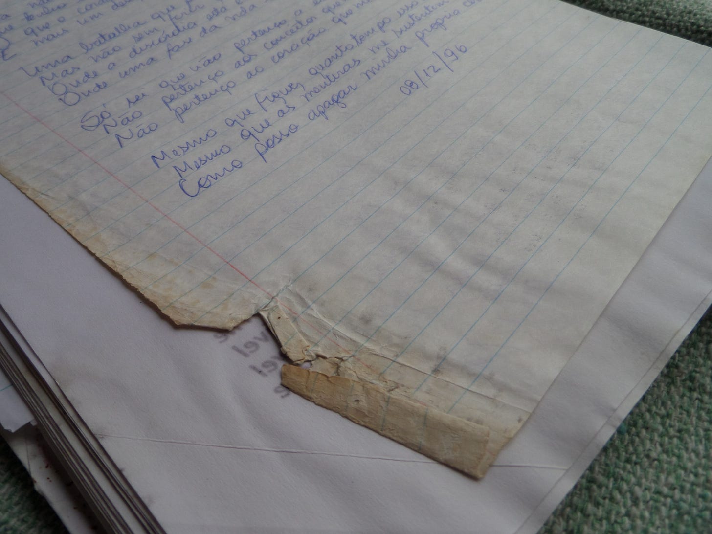 O não pertencimento é a força motriz desse poema, considerado indigno até de pertencer à obra intitulada “Retrato das Sombras”. E assim, ele permaneceu no caderno até ser resgatado, alguns anos atrás, e grampeado em um dos volumes. O poema contém a data da composição: 8 de dezembro de 1996.