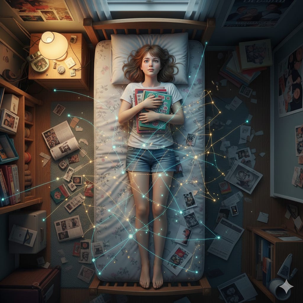 O poema transcende o registro de um afeto adolescente; é o mapeamento de um território psíquico estabelecido em meio ao caos de uma mente neurodivergente em busca de si mesma. O “outro” — aqui configurado como um objeto limerente — deixa de ser uma figura externa para se tornar uma prótese da alma. Para a adolescente autista sem diagnóstico, a realidade bruta é frequentemente hostil, imprevisível e sensorialmente ruidosa. Diante da impossibilidade de pertencer ao mundo comum, a psique constrói um mundo secreto em uma dimensão paralela: a fantasia. E sua função vai além do espaço de veneração do objeto limerente.