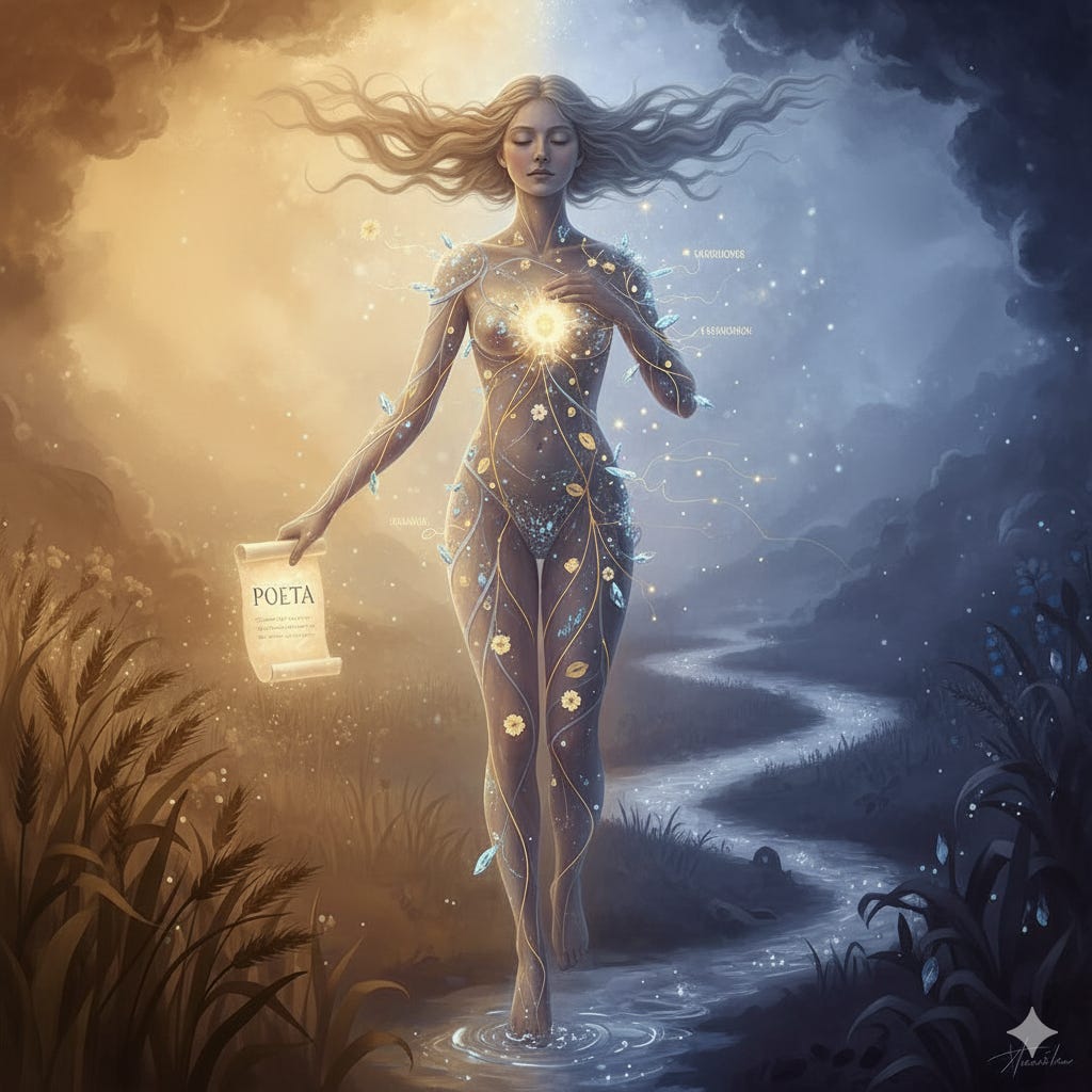 Ultimately, through this introspective voyage, Persephone uses the very act of poetic creation to construct an “armor of self-love,” reclaiming her dual identities and transforming her struggles into art. It’s a testament to the soul’s resilience, its refusal to be silenced, and its ability to find meaning and beauty in the most subtle sensations, carrying the memory of love – fulfilled or unfulfilled – as a driving force for self-discovery.